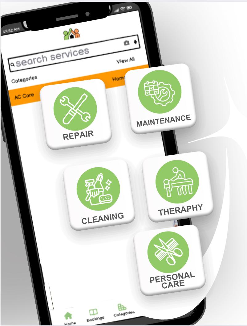 Our One Stop App For All Home Service Needs, a platform where users can book services such as electrical work, plumbing, air conditioning and home repairs, salon services at home, cleaning, pest control, carpentry, appliance servicing and repair, painting, massage therapy, etc. The app will allow customers to find a professional with just one click and access standardized pricing for all services. Service providers can also register on the app to gain more work opportunities. It will benefit not only customers, but also service providers to find work beyond their current scope.
